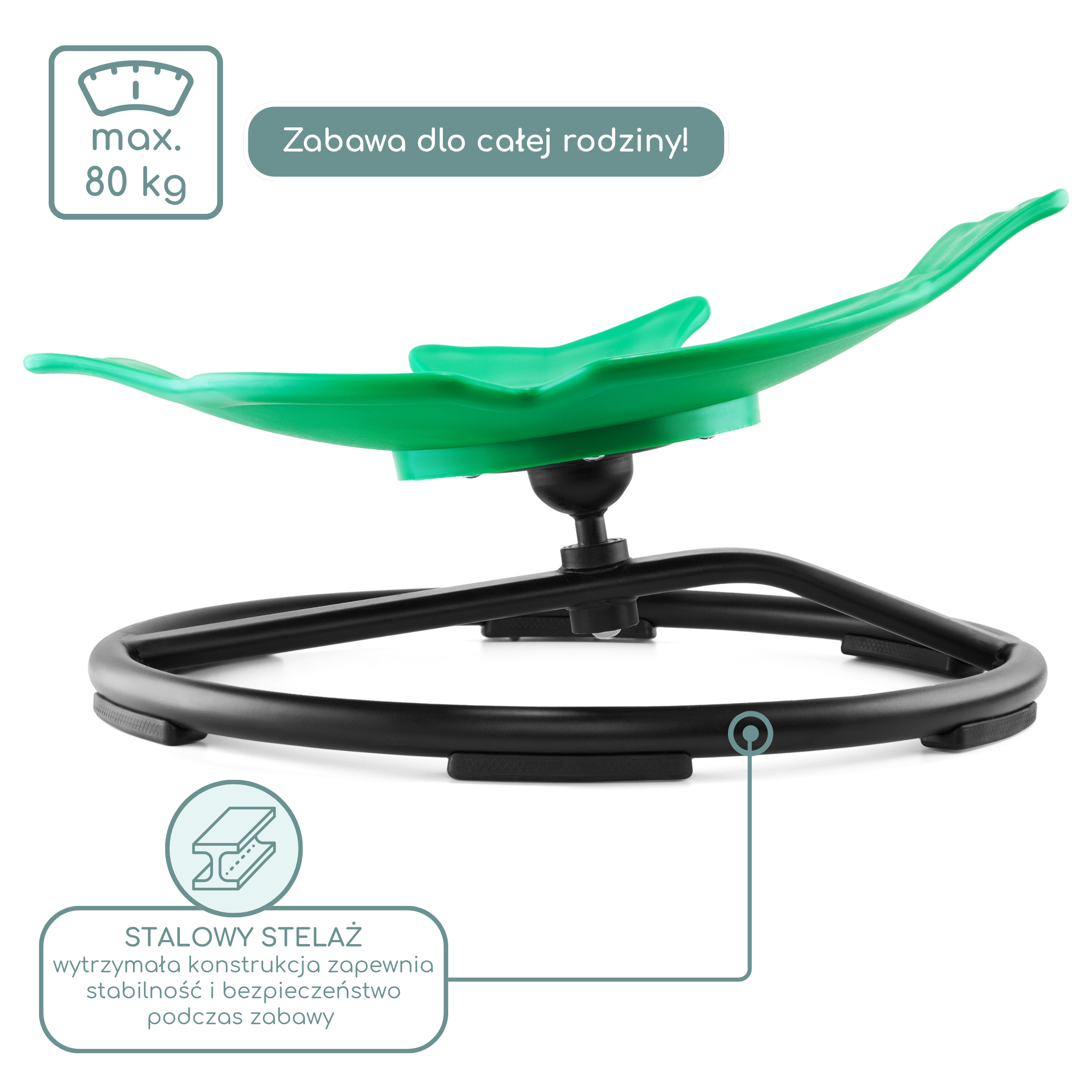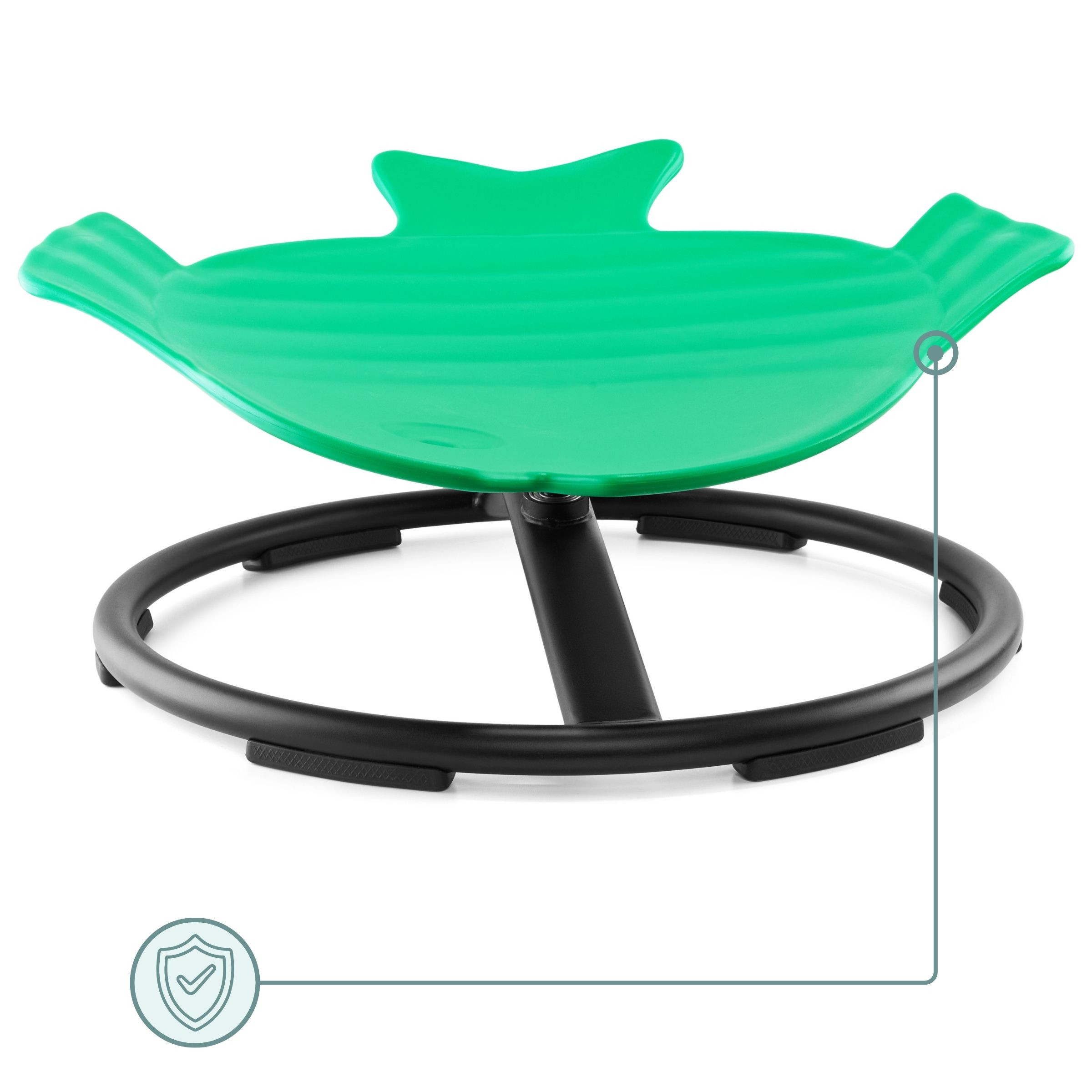 Les bords épais du siège permettent aux enfants d'avoir une prise ferme, ce qui accroît leur sécurité pendant le jeu. Le cadre métallique assure la stabilité et la solidité de la structure, et les bases en caoutchouc empêchent le mini carrousel de glisser sur le sol. Fabriqué en plastique, le siège a été profilé de manière appropriée pour que les enfants soient dans une position confortable et stable pendant qu'ils tournent.