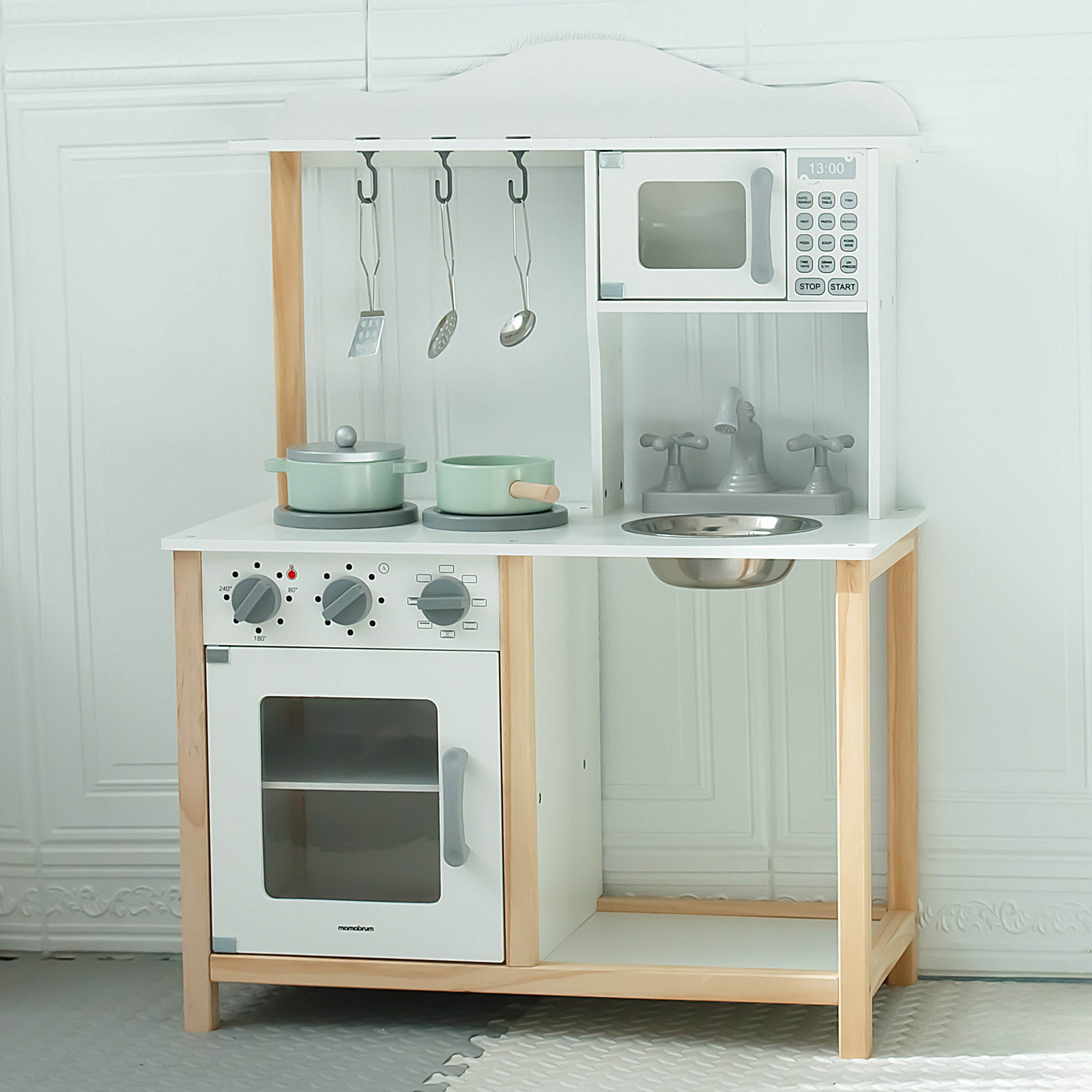 Votre enfant aime vous aider dans la cuisine ? Imiter les adultes est un excellent début pour le jeu créatif et une opportunité de développement en même temps ! La cuisine en bois sera une décoration unique pour la chambre de votre enfant et apportera une atmosphère chaleureuse à la pièce, devenant le centre de divertissement des enfants !