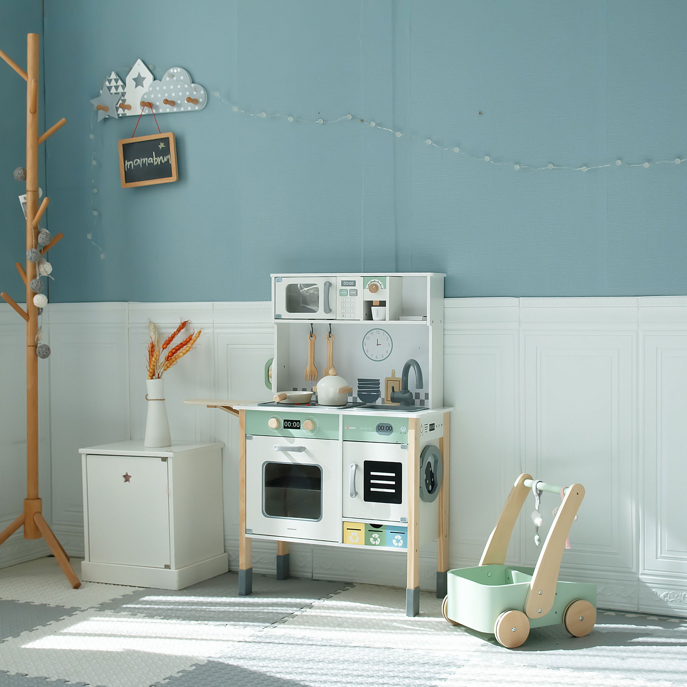 Il est temps de commencer à jouer au papa et à la maman ! La cuisine en bois deviendra plus qu'un simple espace de préparation des repas pour votre enfant. Ses nombreux équipements permettent aux tout-petits d'imiter les adultes dans leurs tâches quotidiennes, ce qui représente un divertissement fantastique pour eux !