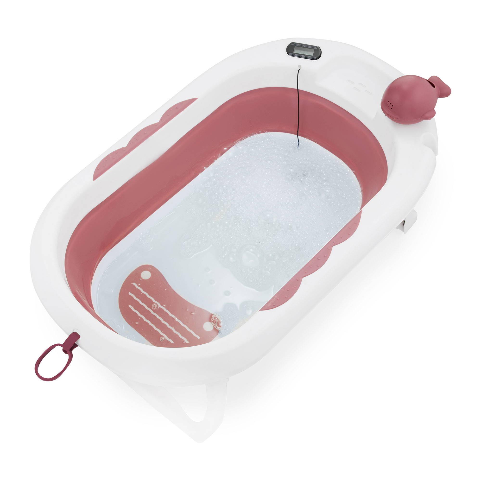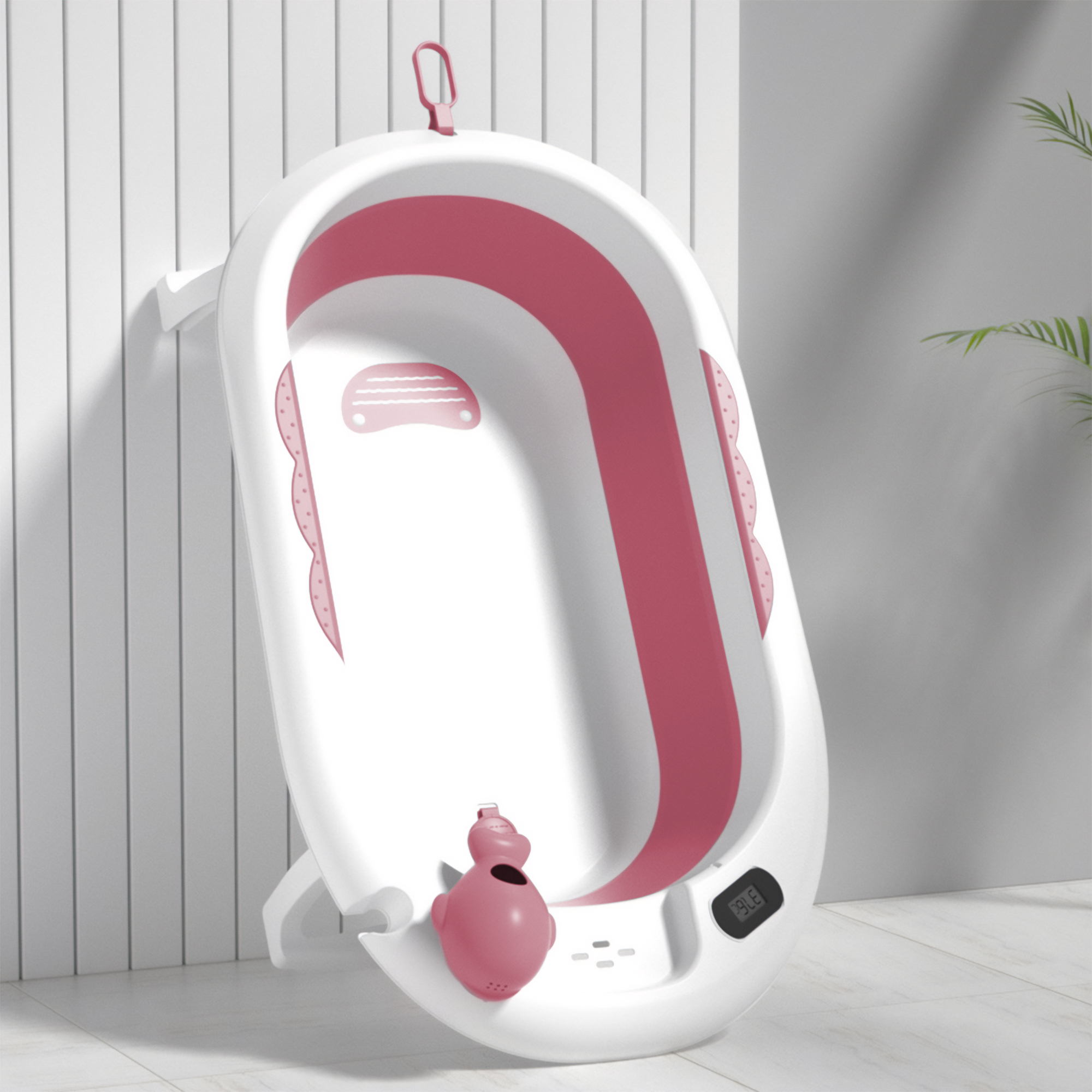 Baignoire pliante pour bébé avec thermomètre, insert et support - couleur rose sale