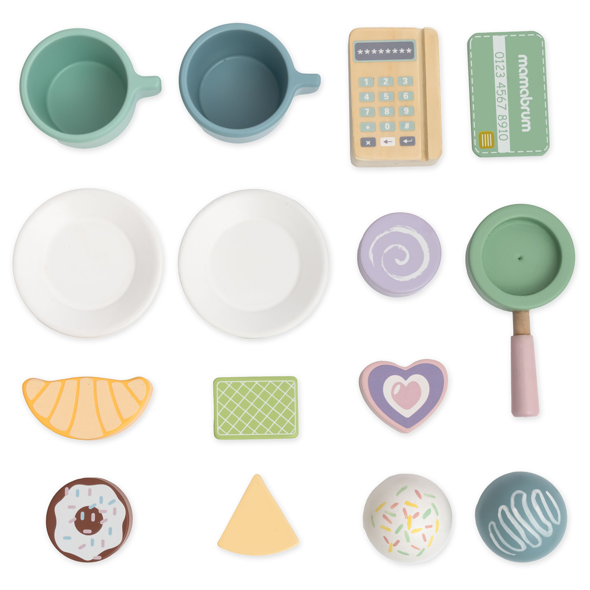Ce magnifique ensemble en bois transportera votre enfant dans un monde de boissons aromatiques et de friandises sucrées ! Votre enfant peut préparer du café, servir de la glace et se faire payer - et répéter le tout dans un nouveau scénario de jeu. Le vaste ensemble d'accessoires permet de créer ses propres menus et de s'amuser pendant des heures à jouer un rôle. Jouer au barista développe la créativité et la dextérité des petites mains.