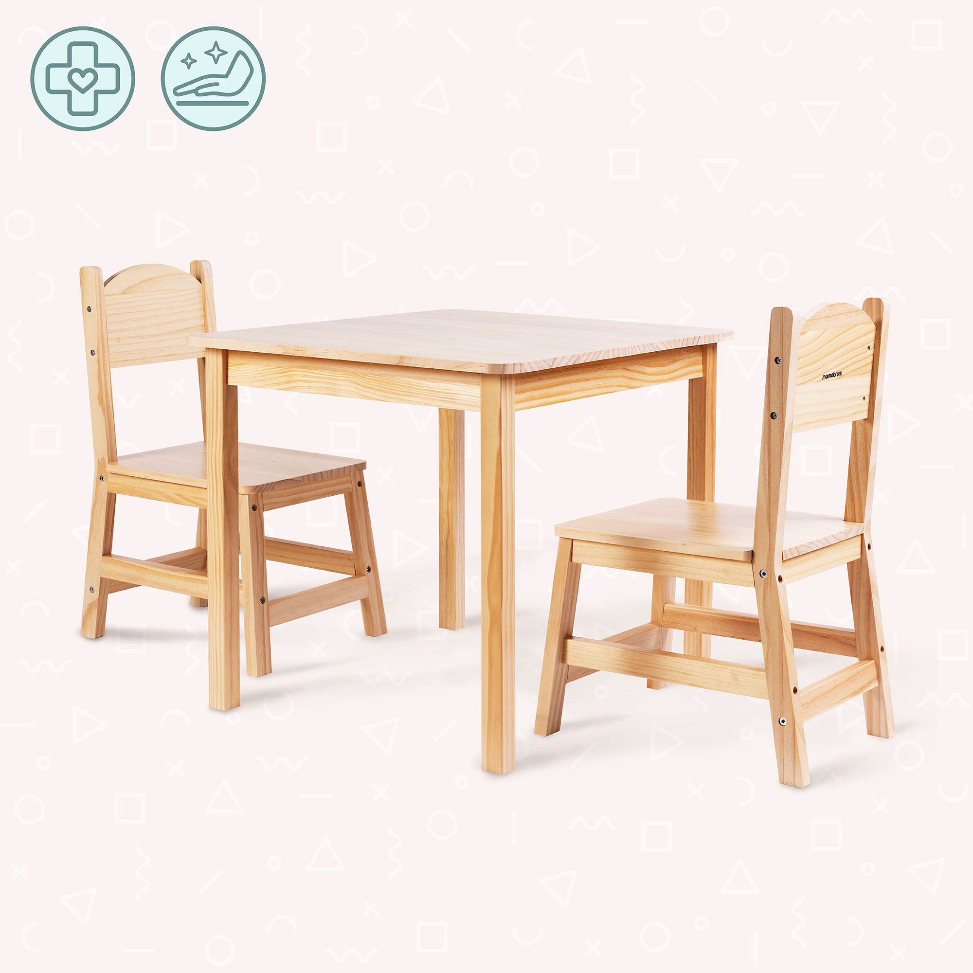 Offrez à votre enfant son propre espace ! Sûr, confortable et plein de possibilités. Cet ensemble en bois, composé d'une table et de deux chaises, est l'endroit idéal pour dessiner, résoudre des énigmes, étudier, manger ou jouer avec ses frères et sœurs et ses amis. Son bois de pin naturel, sa forme ergonomique et sa construction solide en font un meuble idéal pour une chambre d'enfant, un salon ou une aire de jeux.