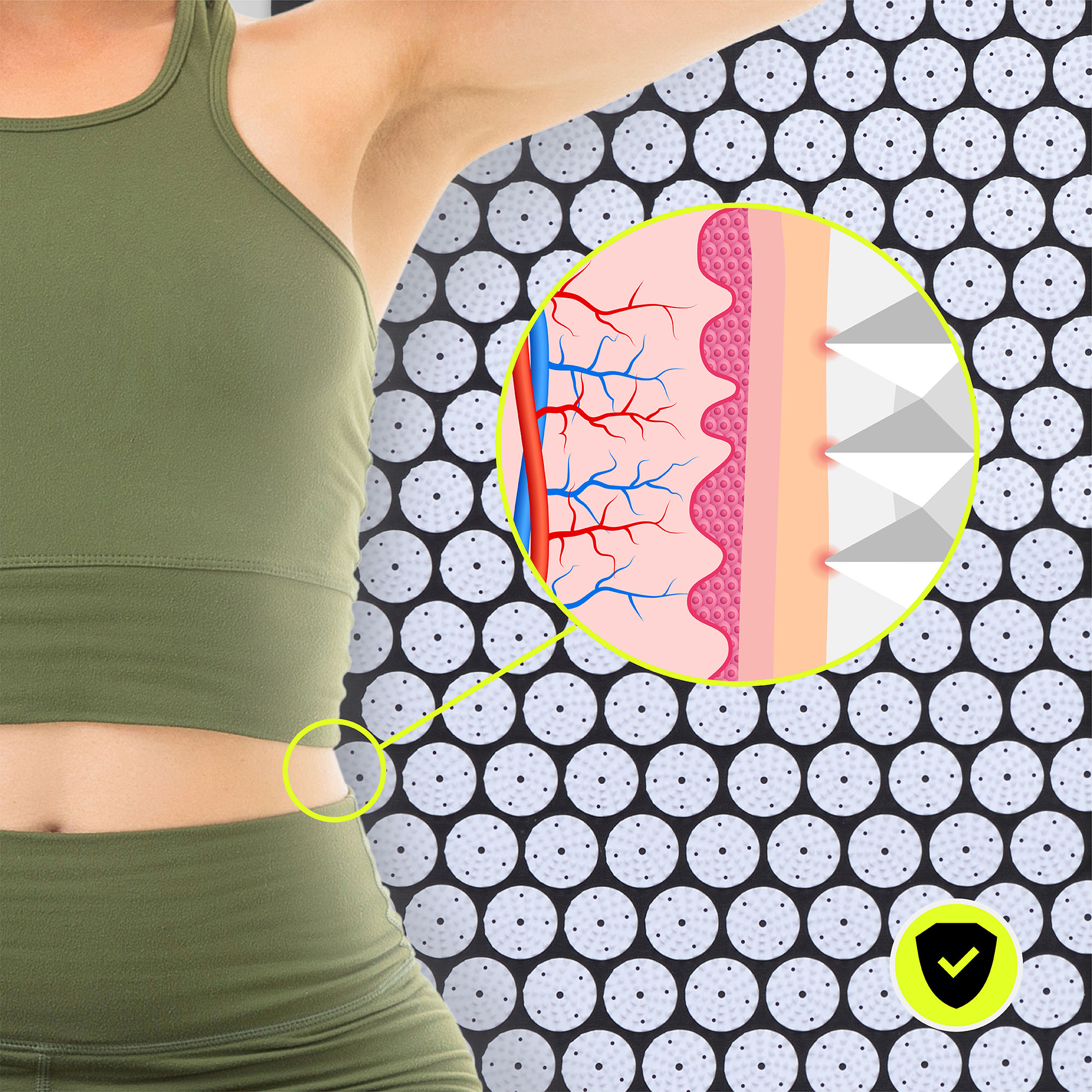 - 7 182 points de pression – 171 rosettes avec 42 pointes chacune, assurent une stimulation uniforme et confortable.