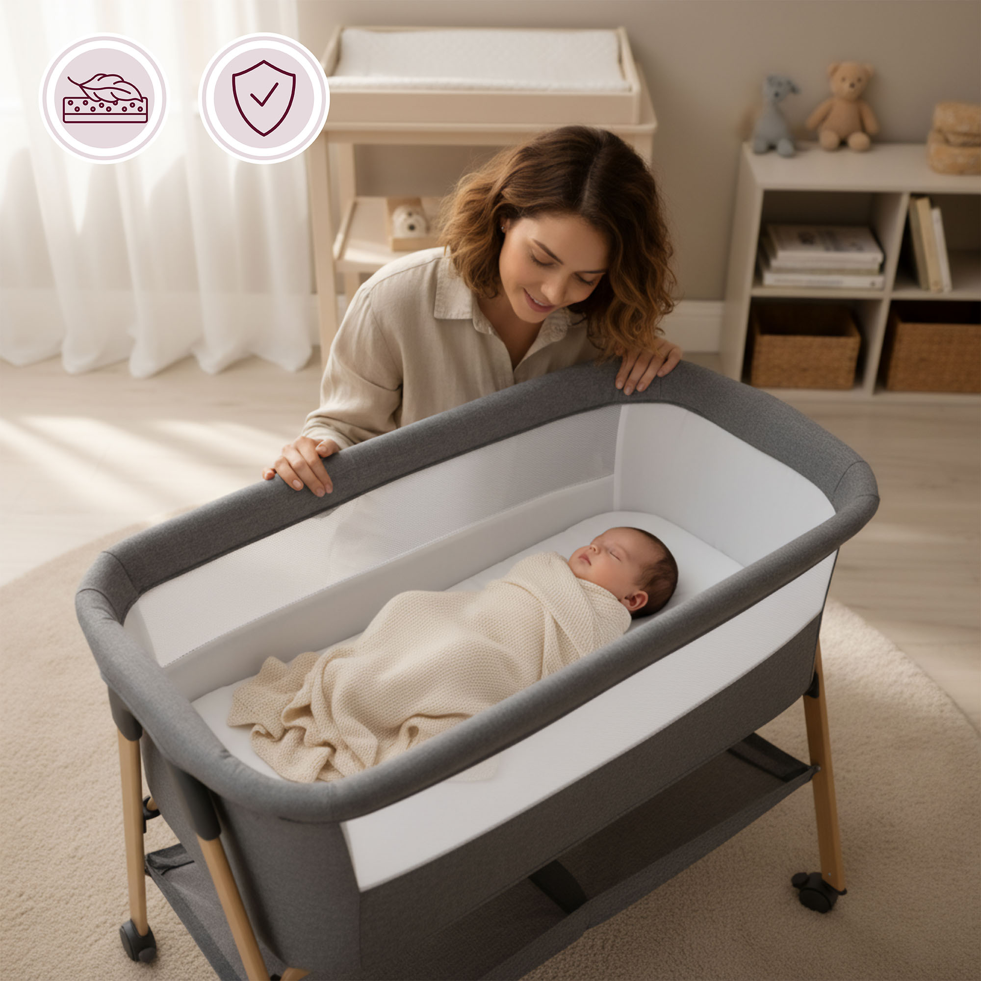 Le berceau a subi des tests rigoureux de stabilité, de qualité des matériaux et de sécurité structurelle. Vous avez ainsi la garantie que votre enfant repose dans un environnement conçu pour offrir une protection et un confort optimaux.