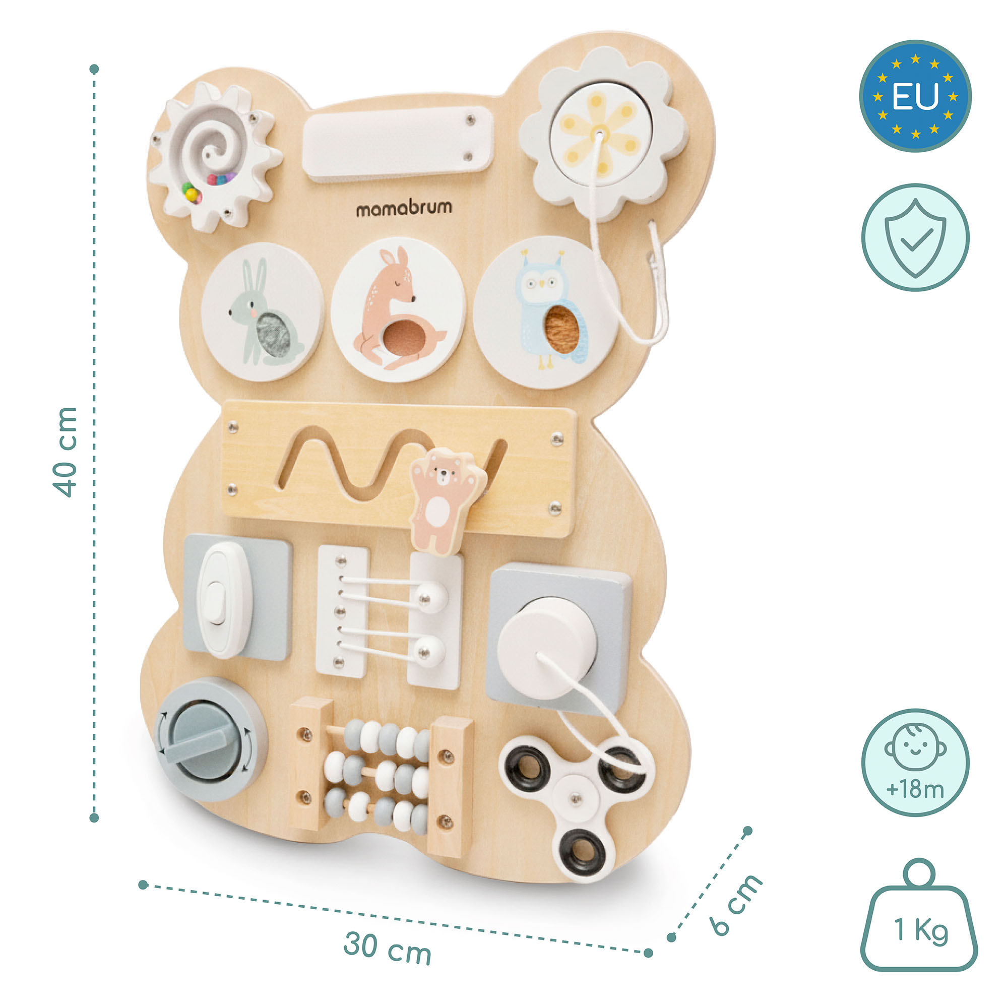 Ce tableau d'apprentissage Montessori en bois, en forme d'adorable ourson, est idéal pour les enfants qui aiment explorer le monde par le toucher, le mouvement et l'expérimentation libre. À la fois jouet et outil pédagogique , il favorise le développement de l'enfant de manière sûre, naturelle et stimulante.