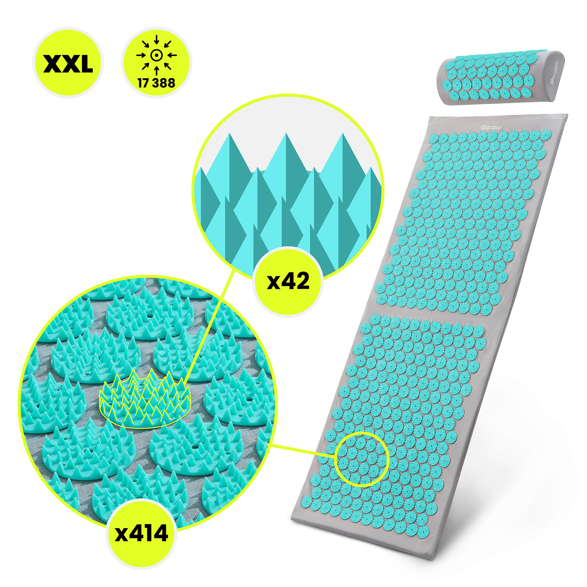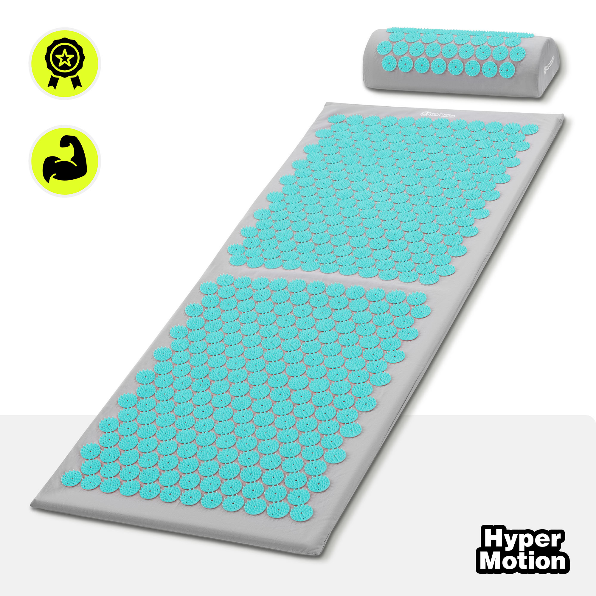 Grand tapis d'acupression avec coussin et housse - 130 cm HyperMotion gris-menthe