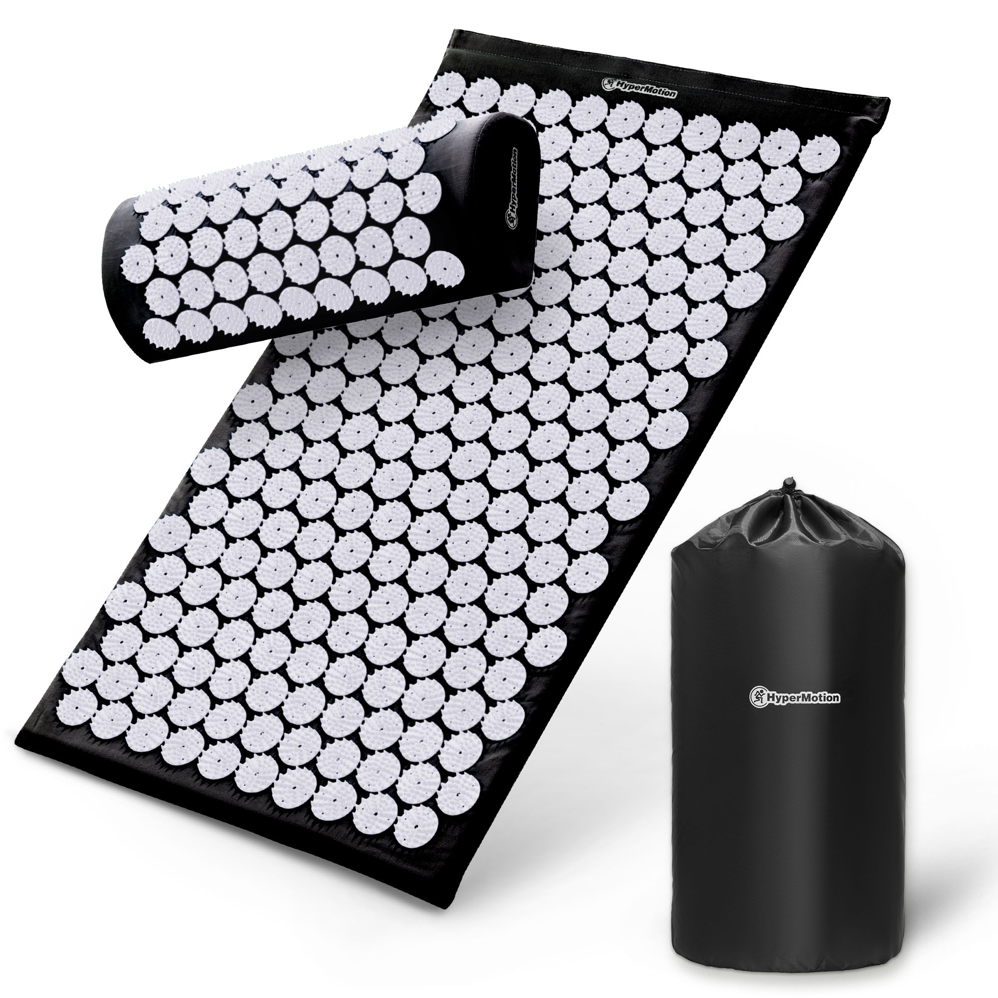 Tapis d'acupression avec coussin et housse - 72 cm HyperMotion noir et blanc