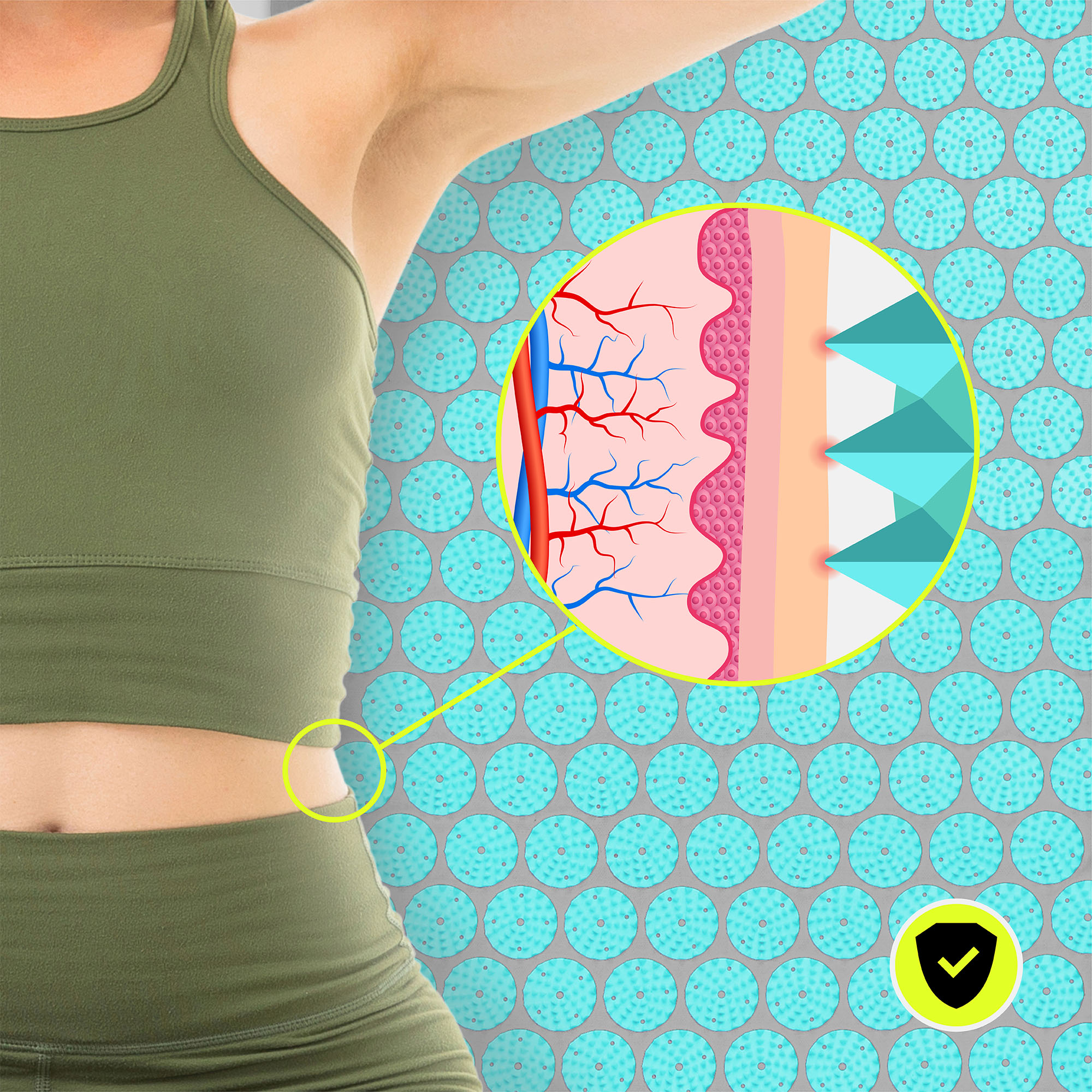 - 7 182 points de pression – 171 rosettes avec 42 pointes chacune, assurent une stimulation uniforme et confortable.