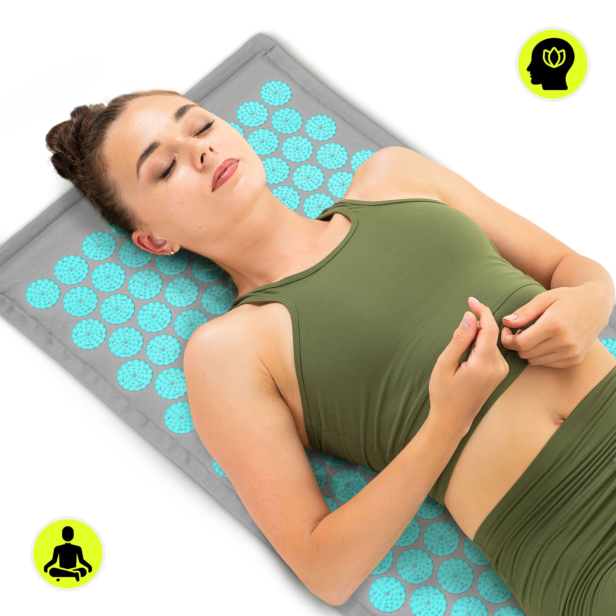 Tapis d'acupression en lin écologique avec coussin en fibres de coco et sarrasin – 68 cm HyperMotion Gris-Menthe