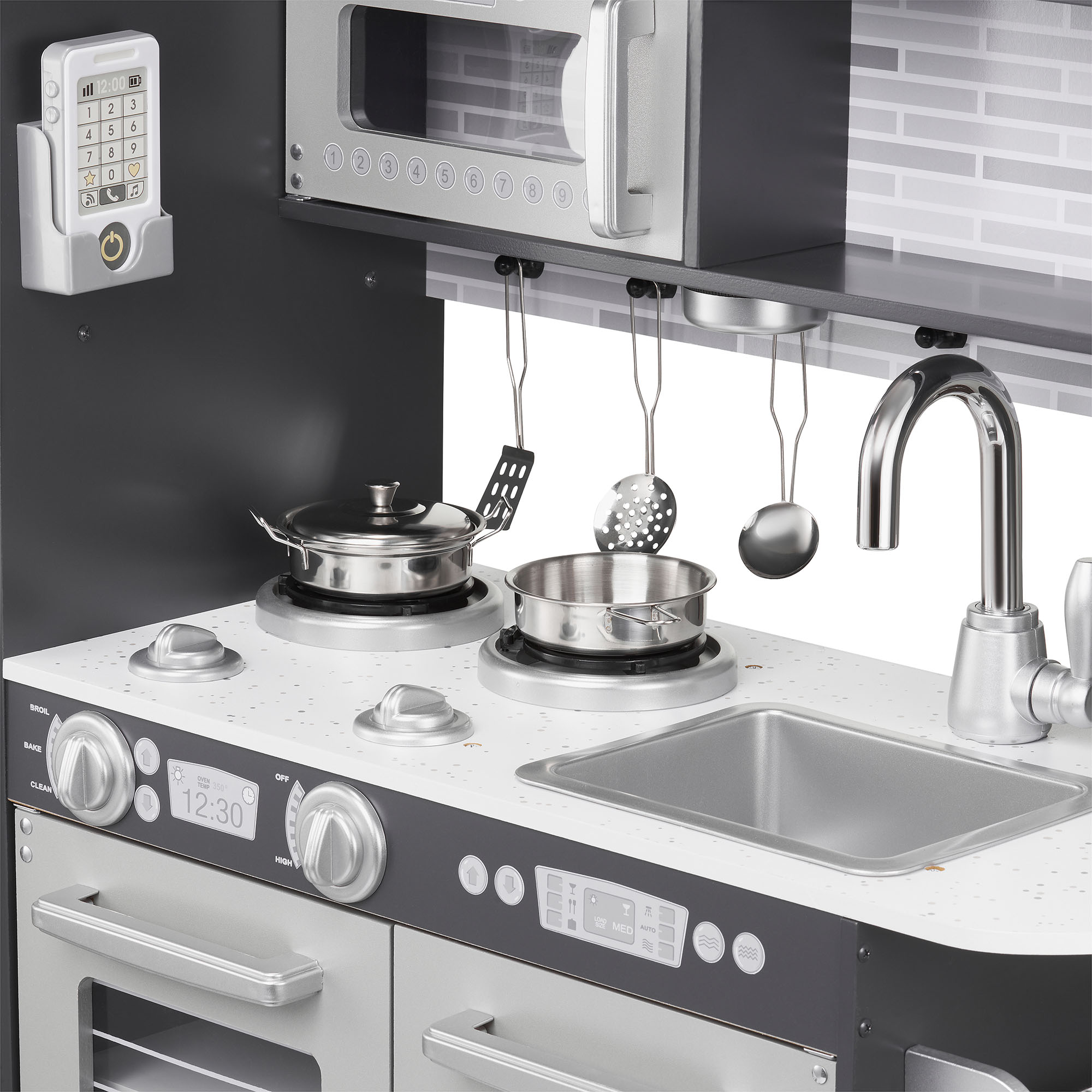 Cuisine en bois XXL avec éclairage LED, tablier et accessoires