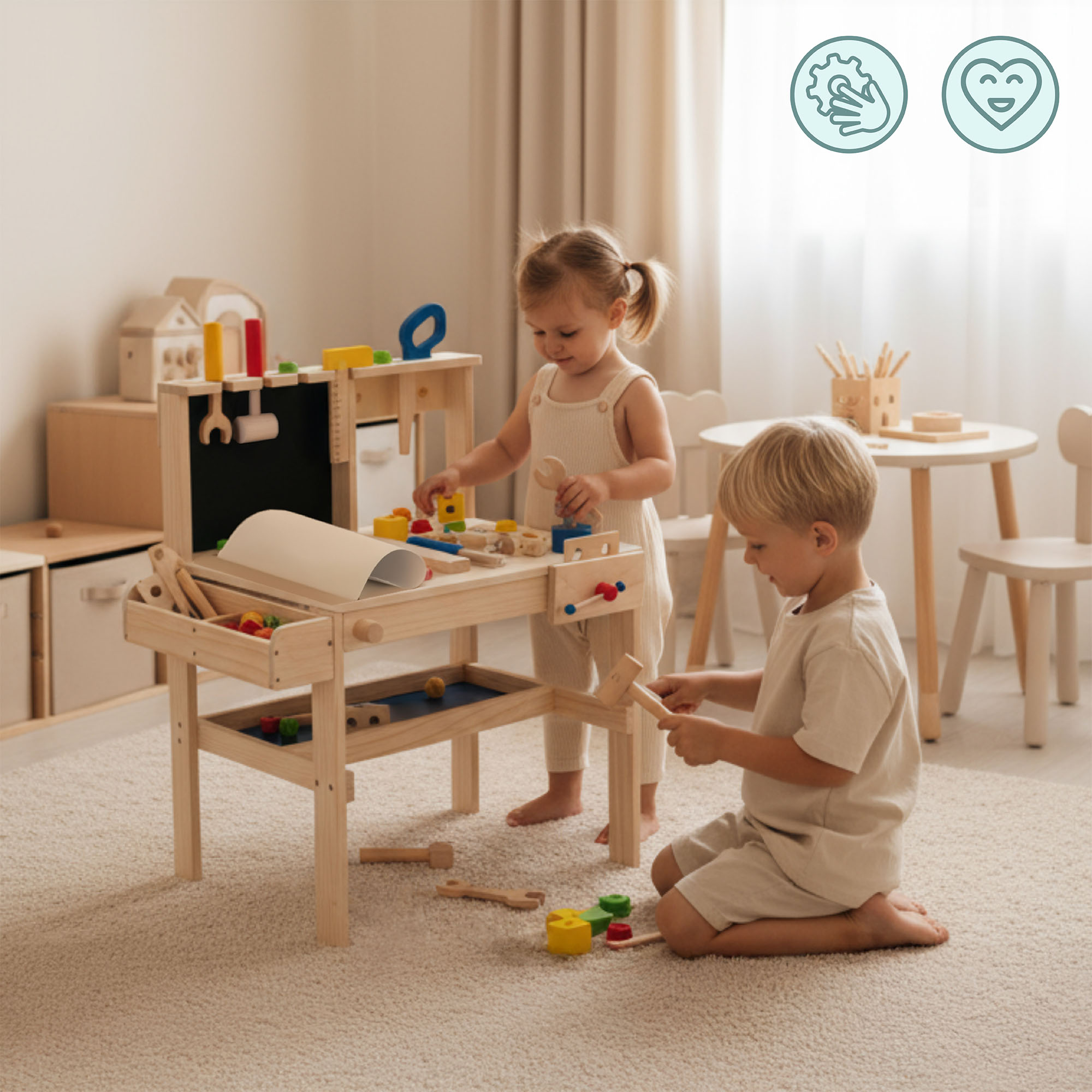 Un beau set de bricolage en bois est un excellent jouet permettant à votre enfant de développer des compétences manuellesapprendre à connaître les outils et leurs utilisations. Les enfants adorent ce genre de jeu !