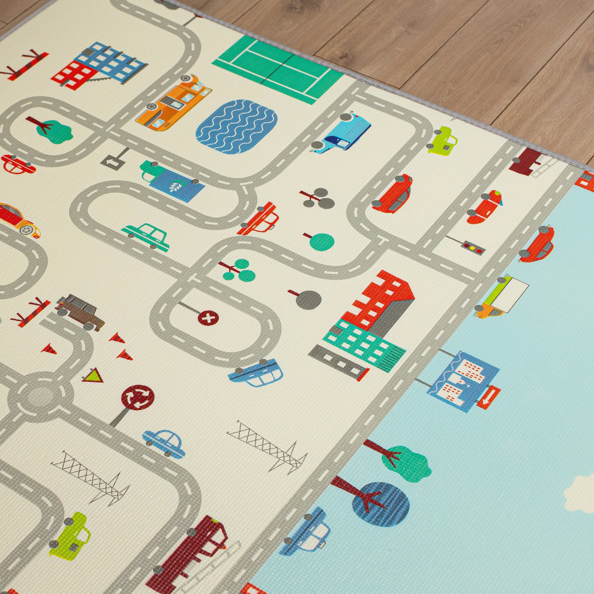 Tapis mousse double face XXL - rouleau 2 CM (route et zigzags)